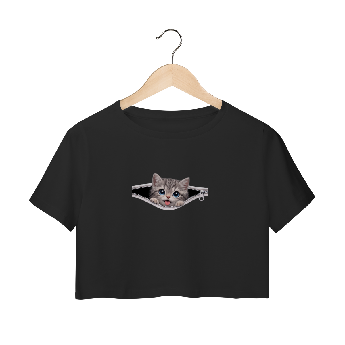 O Cropped ZIP PETS – Cute Grey Tabby Kitten faz parte da coleção ZIP PETS, uma linha criativa que traz pets curiosos surgindo através de um zíper, criando um visual divertido, moderno e cheio de personalidade.